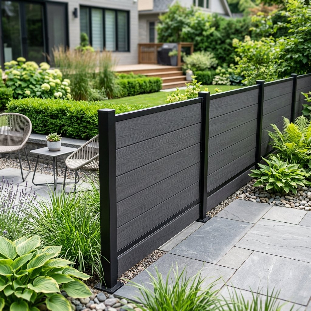The SAPPHIRE fence panel is our premium galvanised and powder-coated steel system. Available in 4 heights, it combines a contemporary horizontal bar design with exceptional durability. Anthracite grey RAL 7024 matt finish.